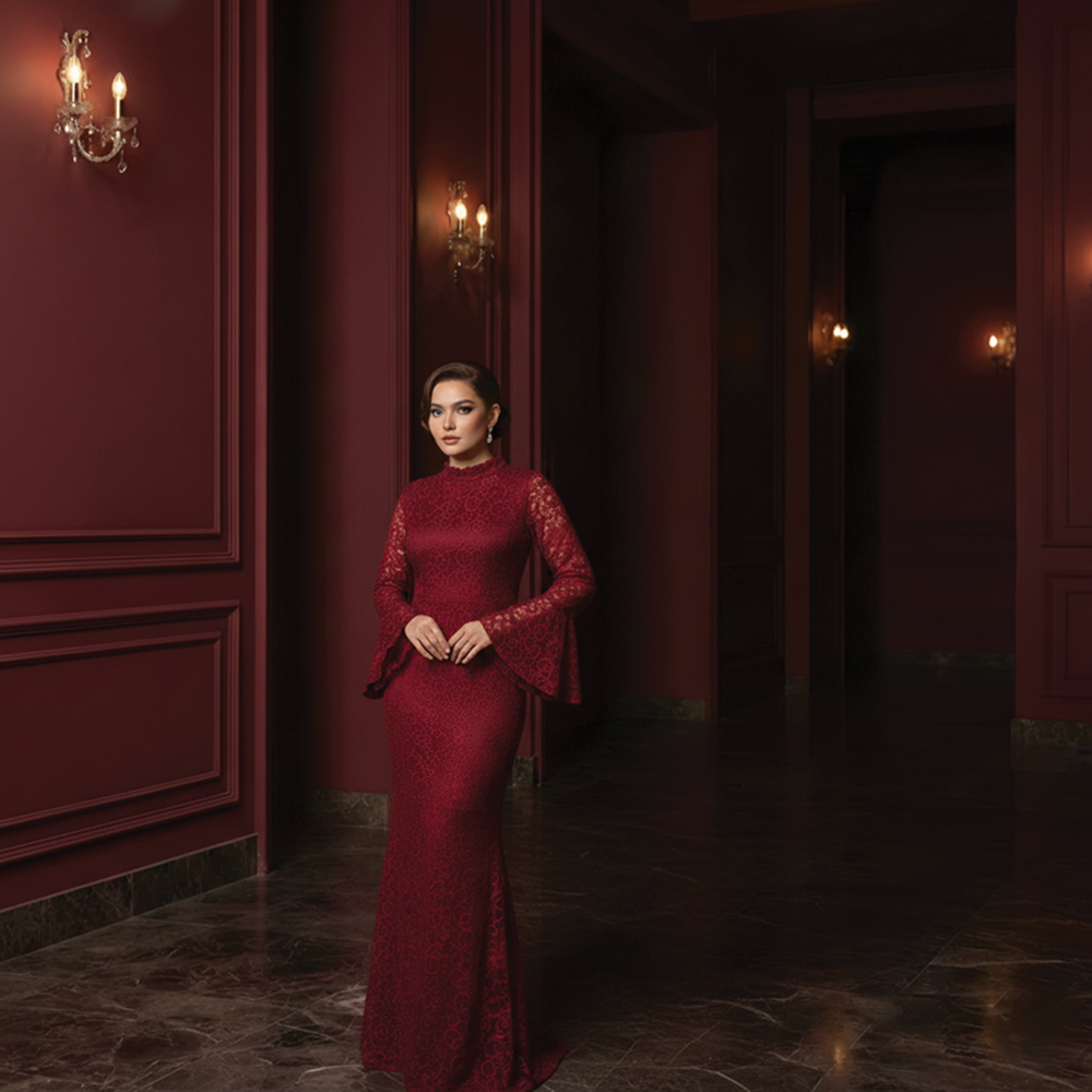 • صُممت الأكمام والتفاصيل العلوية من الدانتيل المشغول بدقة لتعكس رقيّ الذوق واهتمام متجر Larella بالتفاصيل اليدوية.