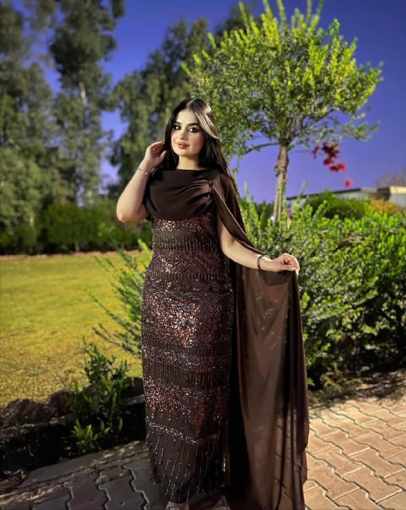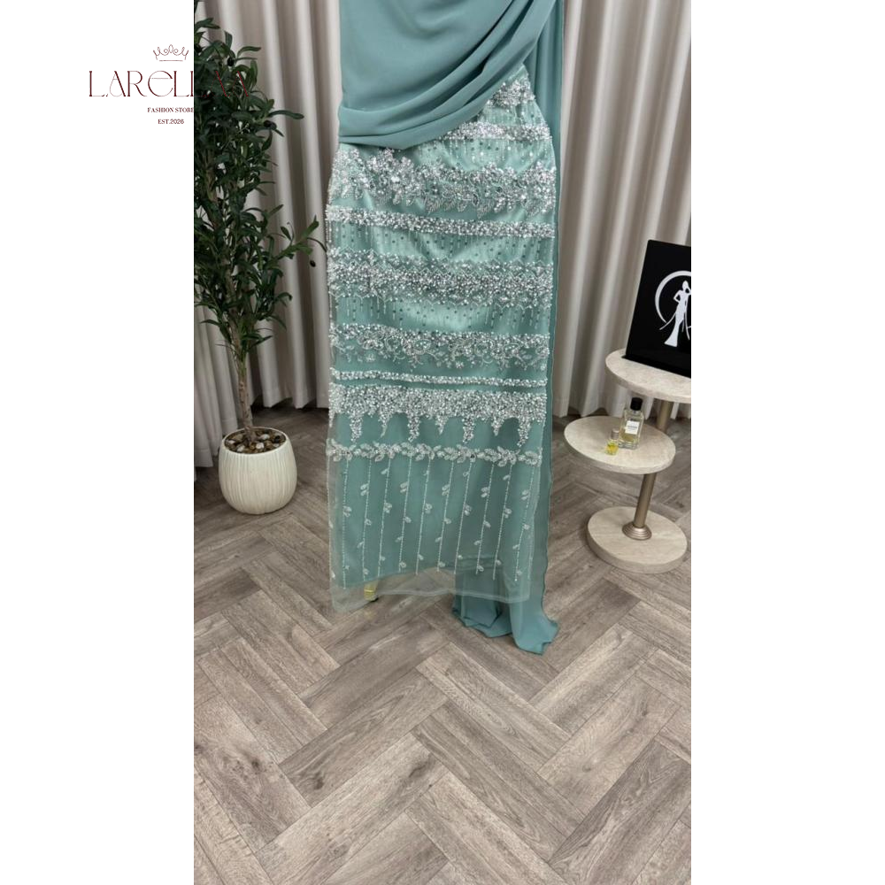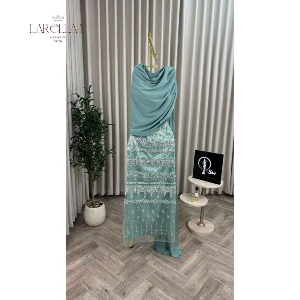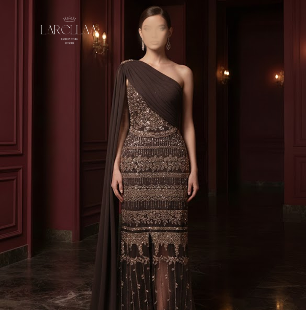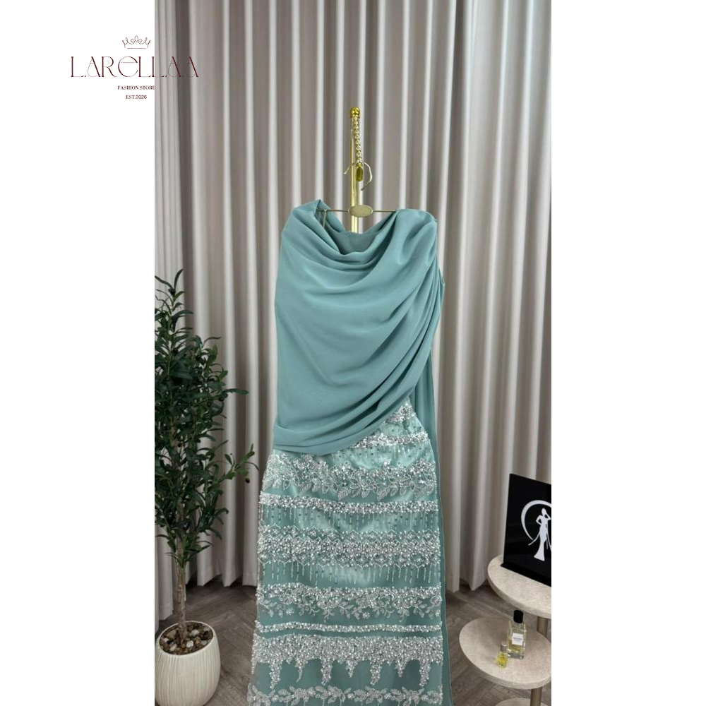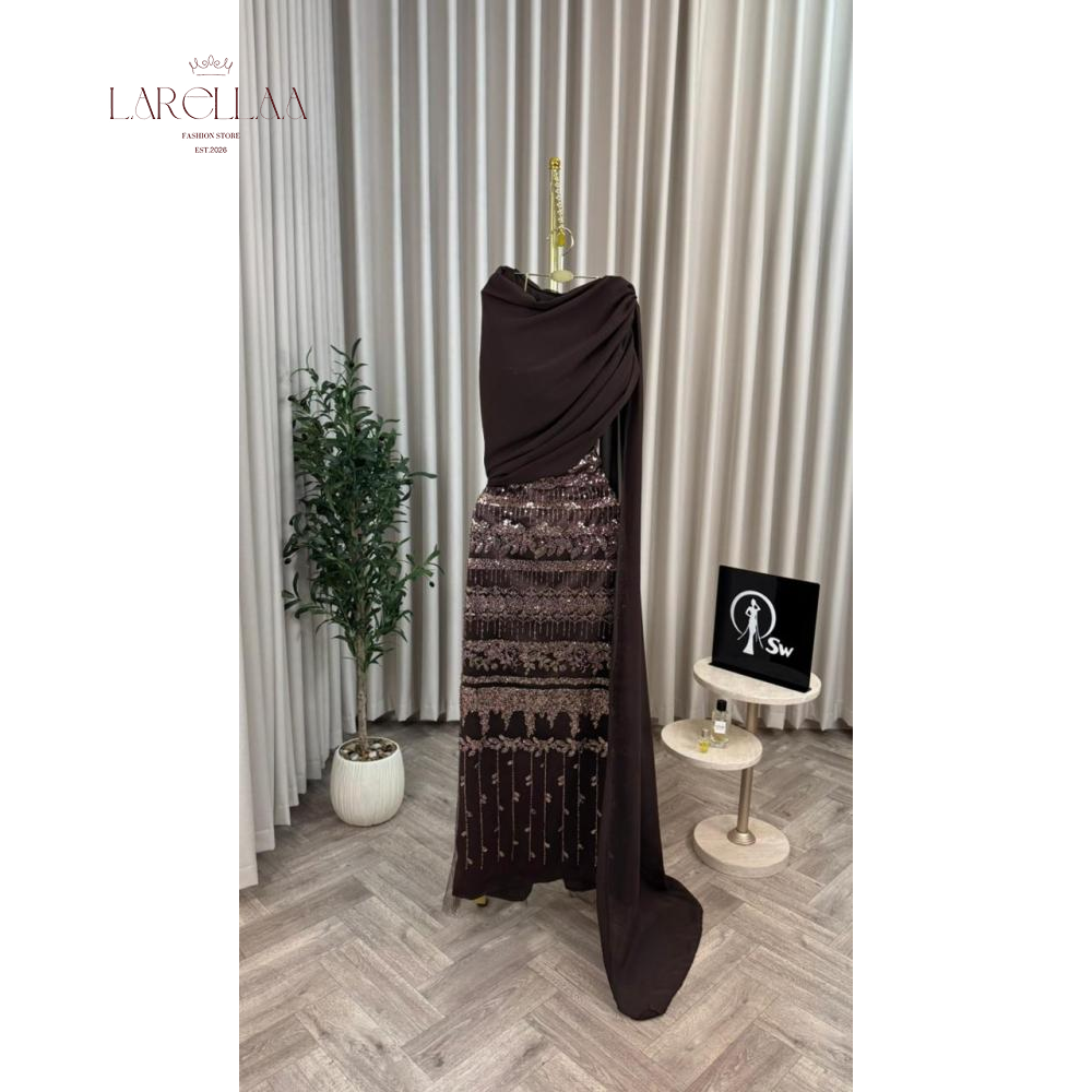 فستان سهرة شك من larellaa استمتعي بإطلالة مفعمة بالأنوثة والبريق مع هذا الفستان السهرة المبطن والمزين بالشك اليدوي الفاخر، الذي يأتي مع شال شيفون انسيابي يمنحك حضوراً ملكياً في مناسباتك المميزة.